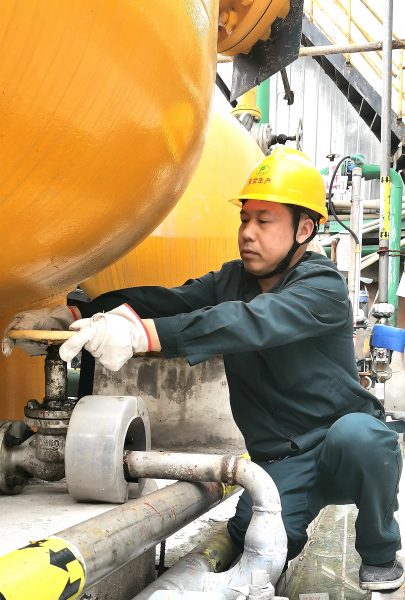 在此期間,梅德政遇到過(guò)很多挑戰(zhàn)與難題,2018年,復(fù)合肥廠涼水塔失火,火情在大家的共同努力下很快得到控制,但火災(zāi)過(guò)后的清淤工作成了更棘手的事。已燃燒和未燃盡的塑料掉入池中,沒(méi)有趁手的工具能做到完全清理,必須人工打撈??墒浅厣畋诨?,下面的燃燒廢料和其他材料混雜在一起,作業(yè)環(huán)境有很多未知風(fēng)險(xiǎn)。梅德政二話不說(shuō),率先穿好雨衣拿著一只袋子就下去了。高溫環(huán)境、廢棄材料燃燒過(guò)的刺鼻氣味,再加上雨衣的行動(dòng)不便,看似簡(jiǎn)單的動(dòng)作變得特別吃力。其它同事見(jiàn)班長(zhǎng)帶頭下去,也一個(gè)個(gè)跟著下去……