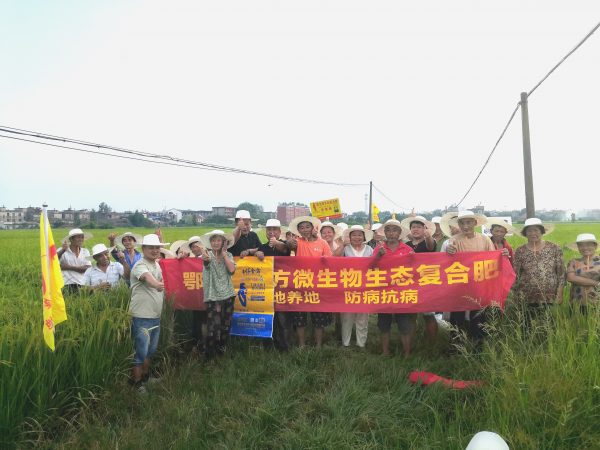 八月的江西,驕陽似火,熾浪奔襲,撫州市臨川區(qū)唱凱鎮(zhèn)唱凱村種植戶羅義泉的水稻田里,一場熱火朝天的觀摩會在此召開,當?shù)亓闶凵毯头N植戶共50余人參會。羅義泉在唱凱村有約80畝水稻田,以小路為界,一邊三十幾畝用的是常規(guī)肥氯基45%(15-15-15),另一邊用的是鄂中仟金方生態(tài)肥32%(19-5-8)。對比兩邊的水稻長勢,使用仟金方的田塊分蘗率更強,莖稈更粗壯,結(jié)實率更高,每畝產(chǎn)量預估會比對照田高150斤左右。在今年連續(xù)高溫的情況下,仟金方的抗逆性獲得在場種植戶們的一致認可。(江西分公司 劉朋朋)