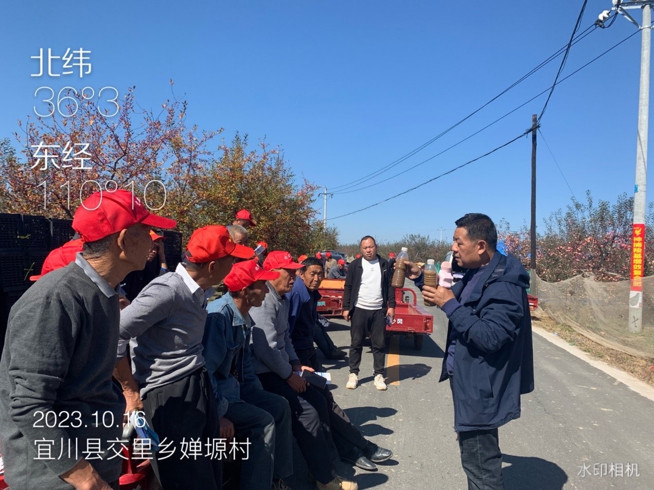 10月16日,宜川縣交里鎮(zhèn)嬋塬村,神捕觀摩會(huì)在這里舉行,紅彤彤的蘋果掛滿枝頭,讓人垂涎欲滴。前來觀摩的村民,看著樹上漂亮的蘋果不停地夸贊,“這個(gè)果子就是好啊,看來這肥料確實(shí)效果不錯(cuò)!”