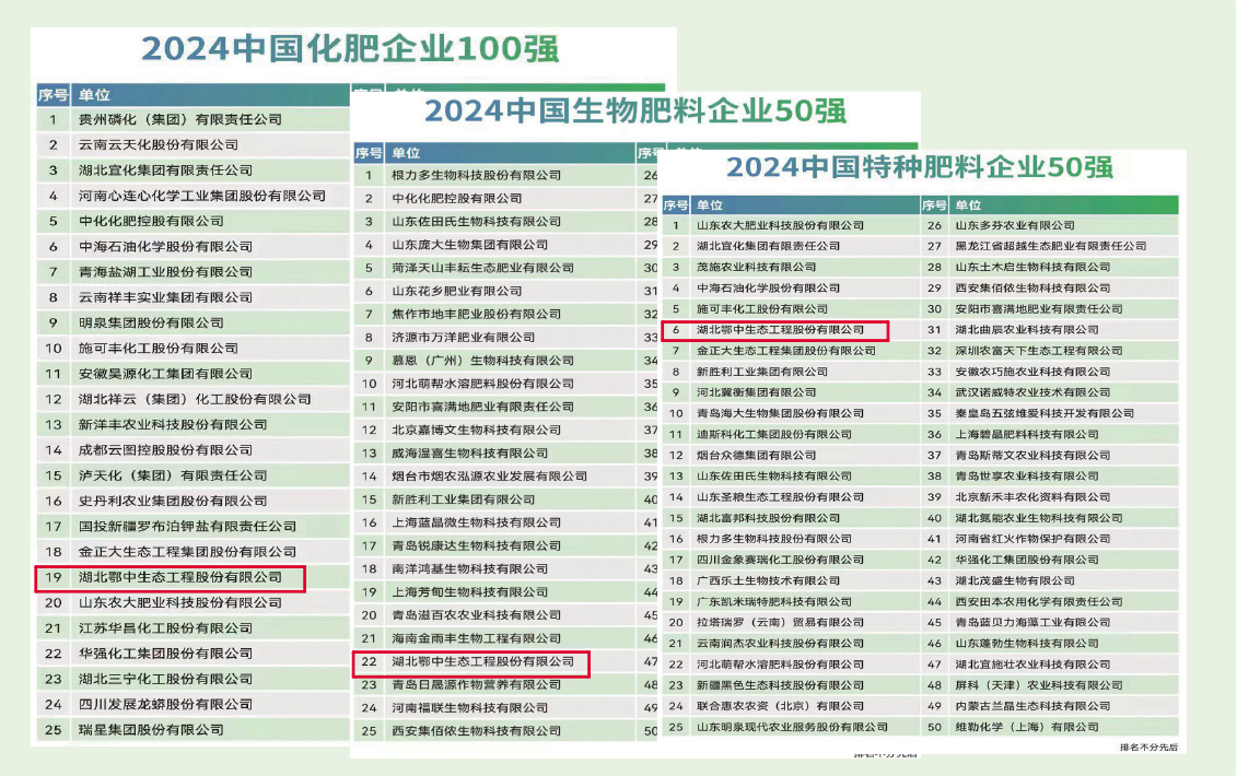鄂中生態(tài)入選2024中國化肥企業(yè)百強榜單
