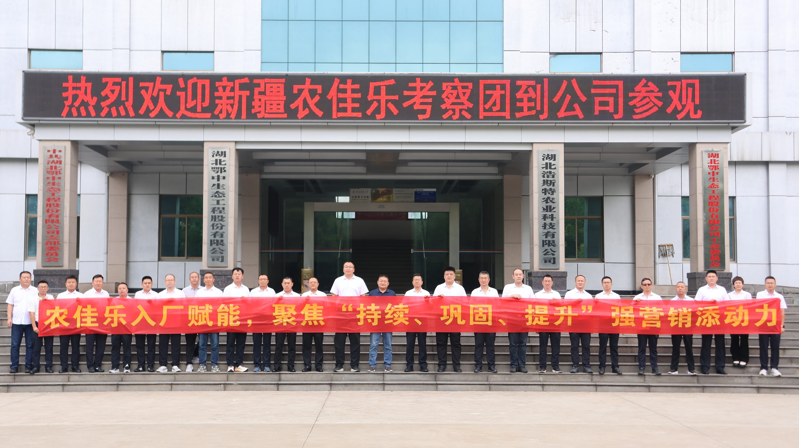 9月8日,新疆農(nóng)資(集團(tuán))有限責(zé)任公司紀(jì)委書記韓磊帶領(lǐng)子公司新疆農(nóng)佳樂農(nóng)業(yè)科技發(fā)展有限公司銷售團(tuán)隊到鄂中生態(tài)參觀考察。銷售總監(jiān)孫亮、東西北大區(qū)經(jīng)理孫權(quán),新疆銷售分公司經(jīng)理曾俊松,市場推廣部部長杜水清、新產(chǎn)品研發(fā)部部長艾新帥熱情接待。