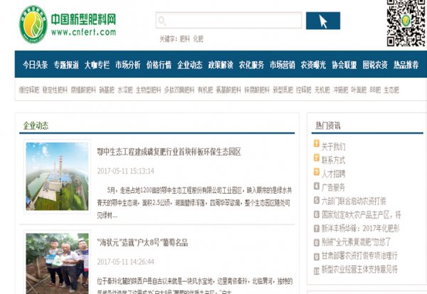 《鐘祥市政府網(wǎng)站》、《中國新型肥料網(wǎng)》5月11日:鄂中生態(tài)工程園區(qū)建成磷復(fù)肥行業(yè)首塊樣板環(huán)保生態(tài)園區(qū)