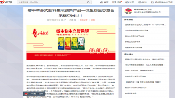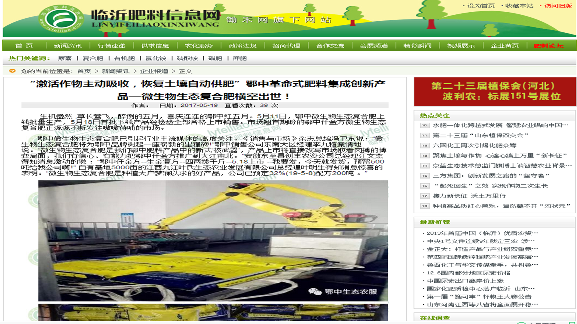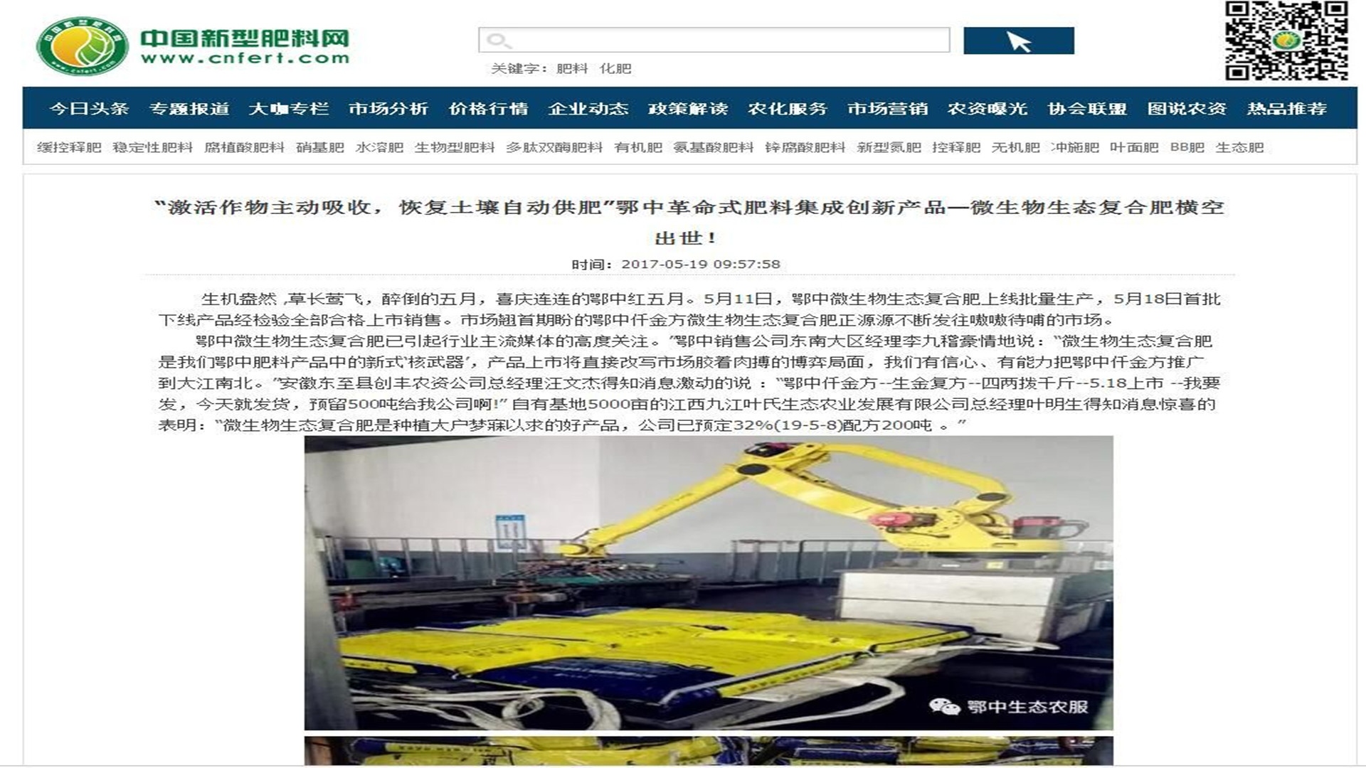 《中國新型肥料網(wǎng)》.《肥料信息網(wǎng)》等新媒體強(qiáng)烈關(guān)注鄂中仟金方微生物生態(tài)復(fù)合肥:鄂中生態(tài)革命式肥料集成創(chuàng)新產(chǎn)品—微生物生態(tài)復(fù)合肥橫空出世!