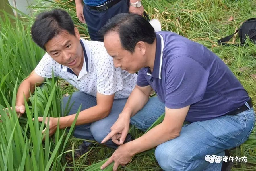 在40畝(環(huán)形蝦溝13畝)蝦稻共生示范田里,示范戶李忠國現(xiàn)場介紹說:“7月8日畝施仟金方蝦稻套餐肥32%(19-5-8)底肥48斤,施肥31天后。與往年施用其它復合肥有一個顯著特點,就是水溝表層不再產生大面積油質殘留,無青苔產生,仟金方蝦稻套餐肥施用后分解了水底殘留有毒物質并轉化為肥效,無蝦病,無死蝦現(xiàn)象產生?!倍踔猩鷳B(tài)中醫(yī)養(yǎng)護隊隊員夏萬峰現(xiàn)場補充說明:仟金方蝦稻套餐肥主要功效就表現(xiàn)在防青苔,解水、解毒、解殘留,肥蝦、肥稻、肥草。李忠國還介紹說:“我已經三年沒有收到稻谷,施用水稻長勢好,莖稈健壯,水稻分蕖數(shù)多,共生田有效防止龍蝦進田危害,豐富了小龍蝦的食物來源,促進了小龍蝦生長,今年水稻有望增產增收,小龍蝦也比施用其它復合肥田溝龍蝦規(guī)格大,買價高。”2塊示范田施用仟金方蝦稻套餐肥后都表現(xiàn)為提高了土壤保肥,保水功能,水溝內水草茂盛,生態(tài)環(huán)境好,肥蝦肥草肥稻。