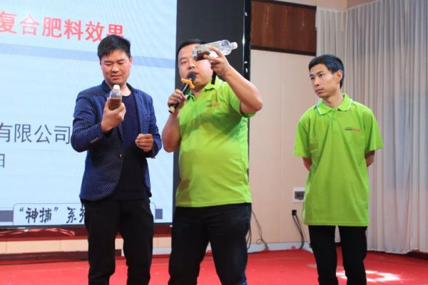 為了讓現(xiàn)場(chǎng)的觀眾近距離感受“神捕”系列增效復(fù)合肥產(chǎn)品,湖北浩斯特化肥有限公司首席農(nóng)化師周忠雄現(xiàn)場(chǎng)為大家進(jìn)行了水土加聚羧酸對(duì)比試驗(yàn)演示和示范田的實(shí)例對(duì)比展示,帶領(lǐng)大家親眼見(jiàn)證了“神捕”系列增效復(fù)合肥的魔力,大家對(duì)“神捕”系列增效復(fù)合肥的效果和市場(chǎng)更加有信心。