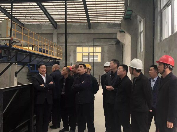 楊才超董事長(左三)視察有機肥生產(chǎn)線