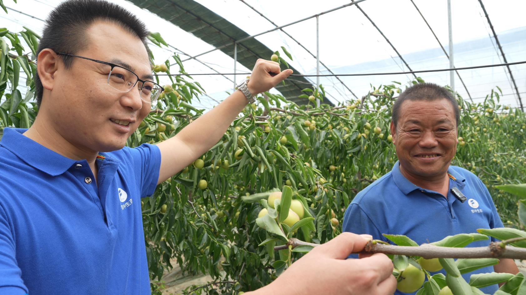 “別人家的露天冬棗現(xiàn)在剛剛謝花,才坐上果,我家暖棚的這些冬棗卻馬上要上市了,算得上是全國最早成熟的冬棗,所以能賣上價(jià)?!睆埿轮夷樕涎笠缰院赖男θ?,一邊為我們挑選果子讓我們品嘗,一邊分享如何挑選好的冬棗,“這個(gè)棗的底色應(yīng)該是白的黃的,不能發(fā)綠,棗上帶色,但不能全紅,最好!”