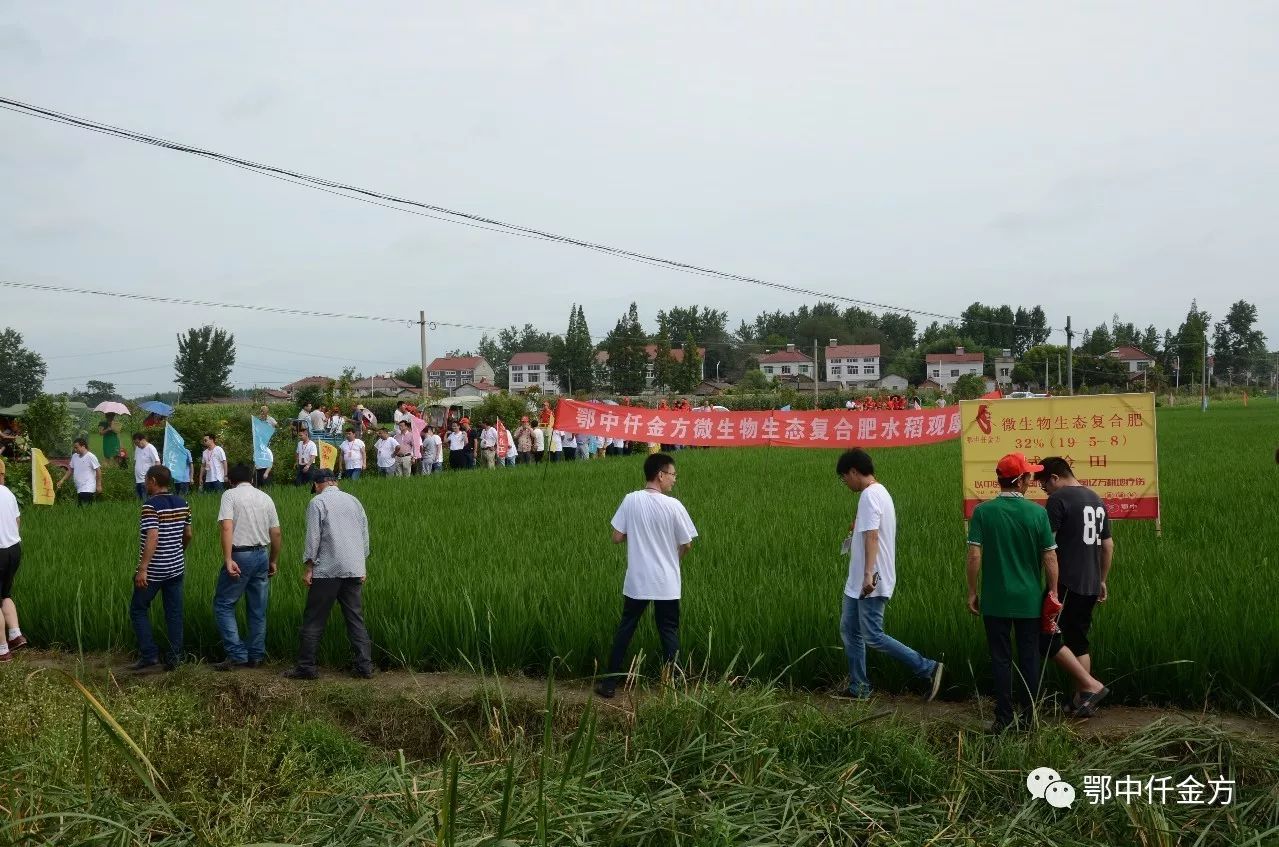 鄂中仟金方一塊水稻示范田開出二場觀摩會,并實施全程追蹤管理、服務(wù),讓農(nóng)戶全程體驗仟金方肥效怎么樣?增產(chǎn)多少?9月21日在湖北省鐘祥市文集鎮(zhèn)青林村召開了示范田現(xiàn)場測產(chǎn)觀摩會,鐘祥市土肥站站長關(guān)少華、中南大區(qū)經(jīng)理杜水清、市場部農(nóng)化中心農(nóng)化員、荊門分公司經(jīng)理田興、農(nóng)業(yè)專家及周邊農(nóng)戶100余人參與了測產(chǎn)觀摩會。荊門電視臺參與現(xiàn)場拍攝見證。