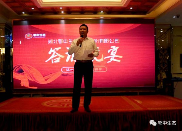 ???????? “這一路、感謝有您相伴”為主題的答謝晚宴情濃展銷會。鄂中生態(tài)副總經(jīng)理朱玉軍在晚宴上發(fā)表了激情洋溢的晚宴致辭。朱總對一直以來給予鄂中生態(tài)以信賴和支持的優(yōu)秀經(jīng)銷商朋友表示了衷心地感謝!
